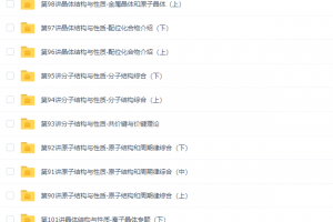 此课件来自学而思网校,高二化学选修3专题课程满分高清视频课程。此课件主要知识点包括:原子结构与性质-原子结构和周期律综合、分子结构与性质-共价键与价键理论、分子结构与性质-分子结构综合、晶体结构与性质-配位化合物介绍、晶体结构与性质-金属晶体和原子晶体、晶体结构与性质-离子晶体专题。