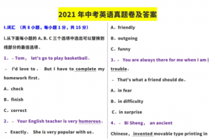 很多同学对刚刚过去的中考试卷一定很好奇,想看看究竟出了哪些题目,本课件为今年中考英语试卷真题,包含了答案,有想自己做做的同学可以下载试试!